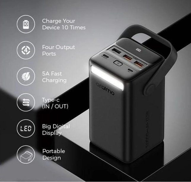 Oraimo Power Box 500، وهو باور بانك بسعة 50000 مللي أمبير، مما… 190 ر.س